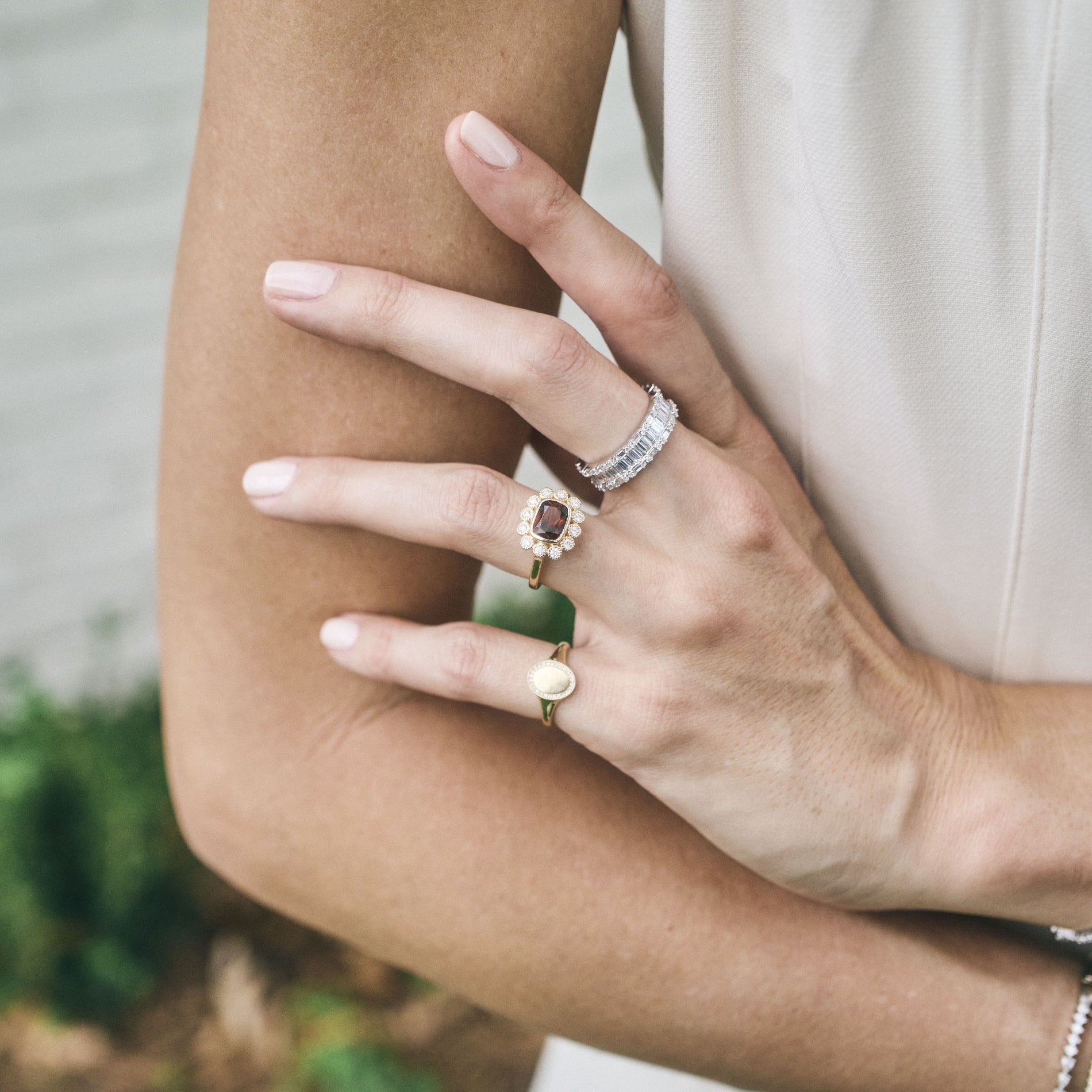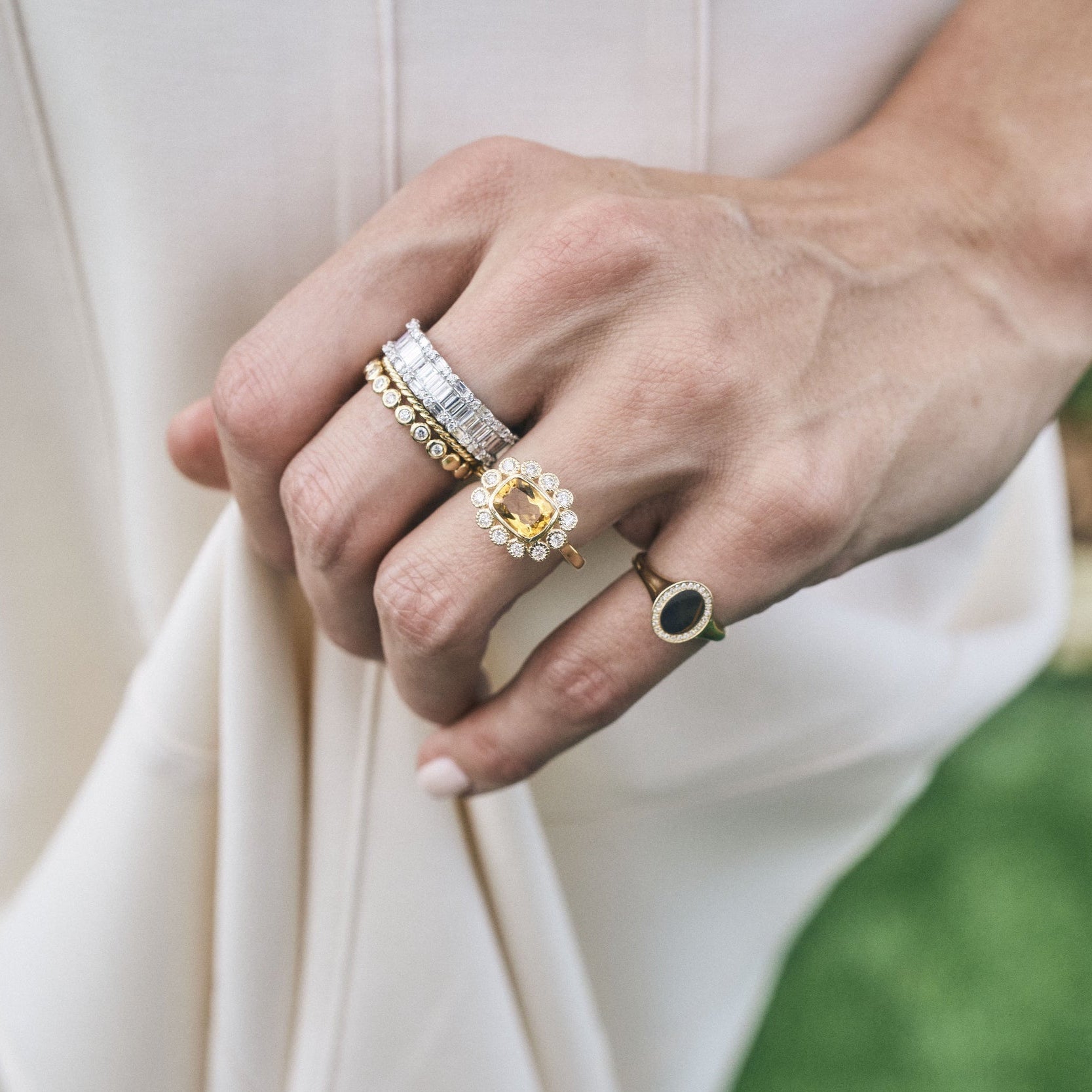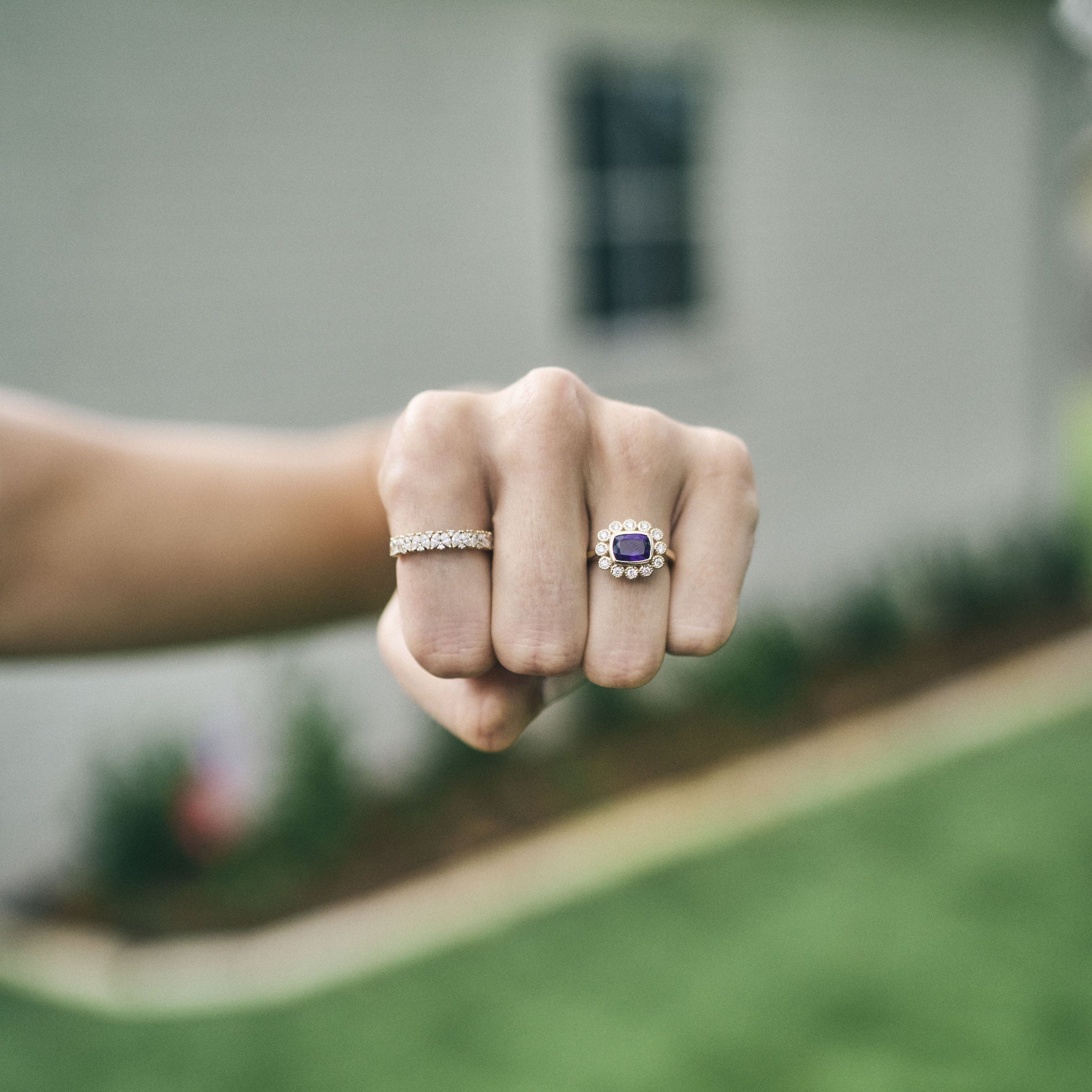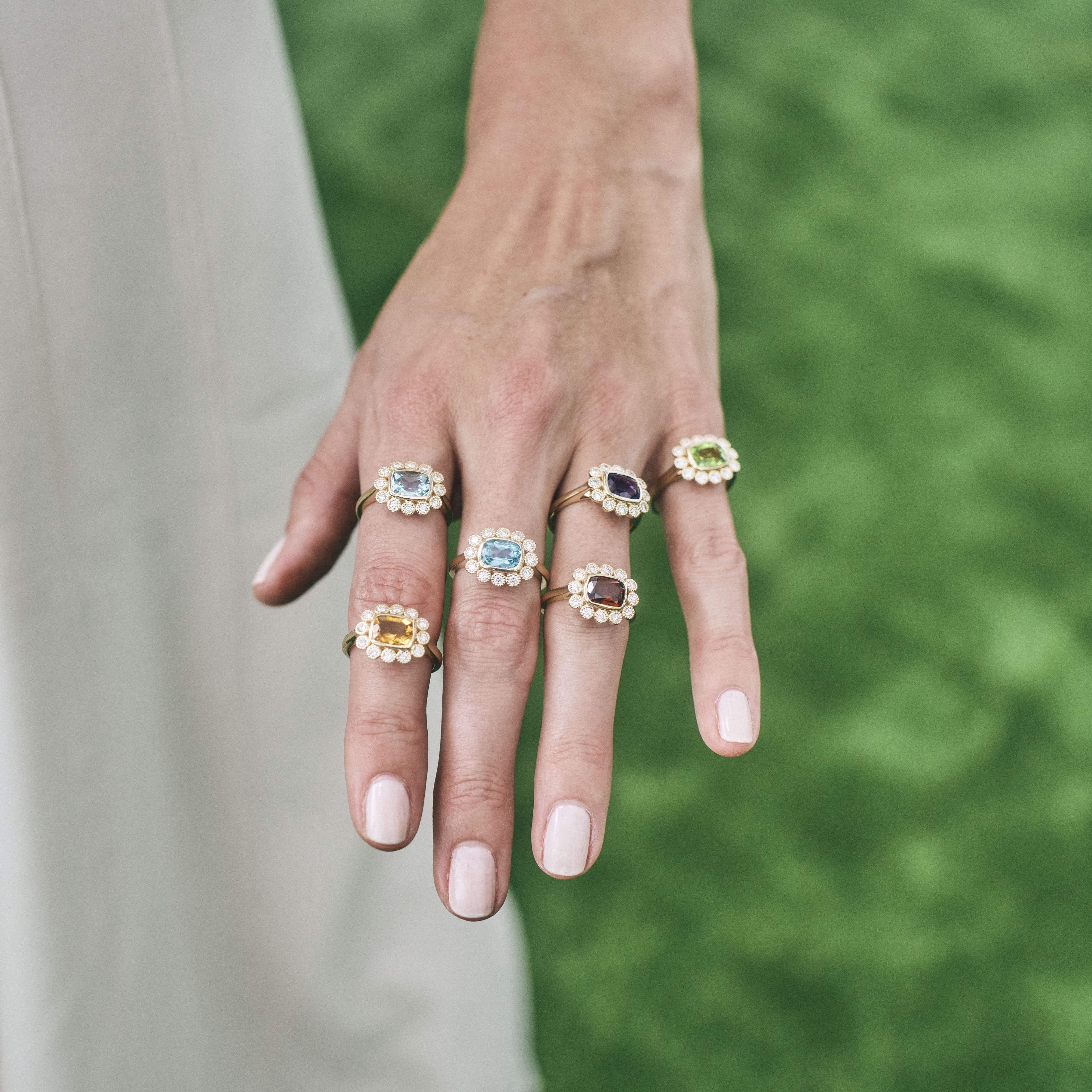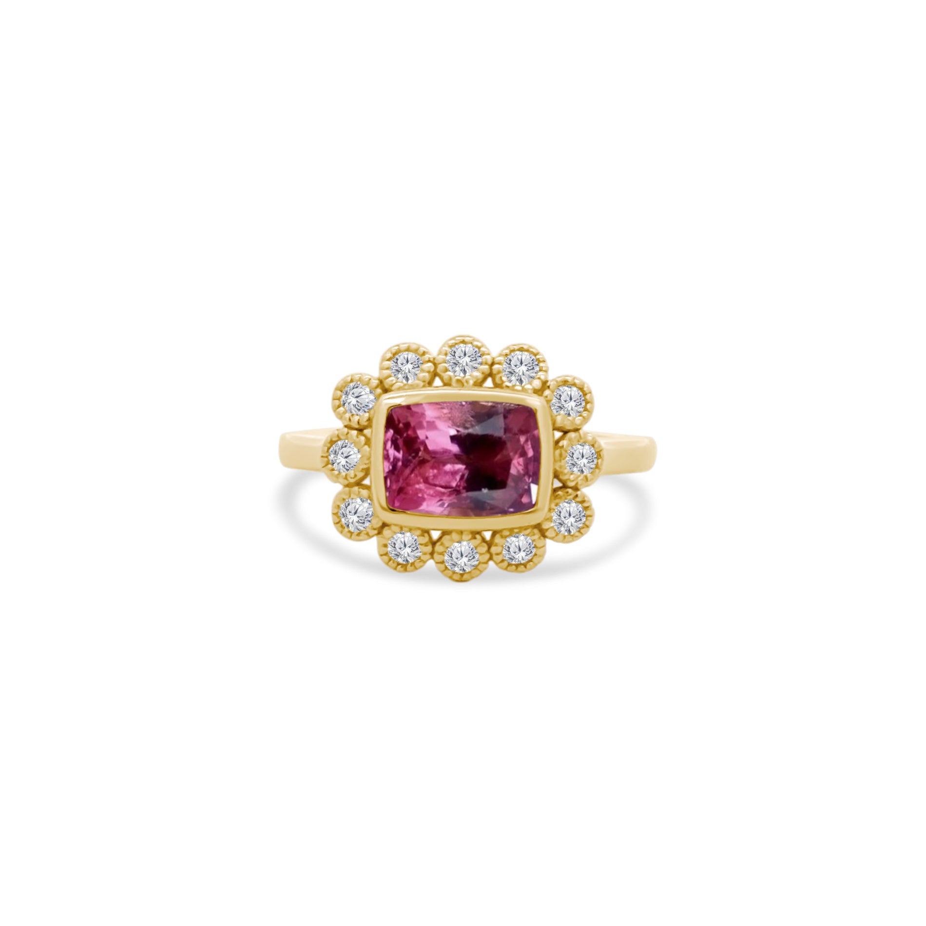 Gemstone & Diamond Milgrain Halo Ring