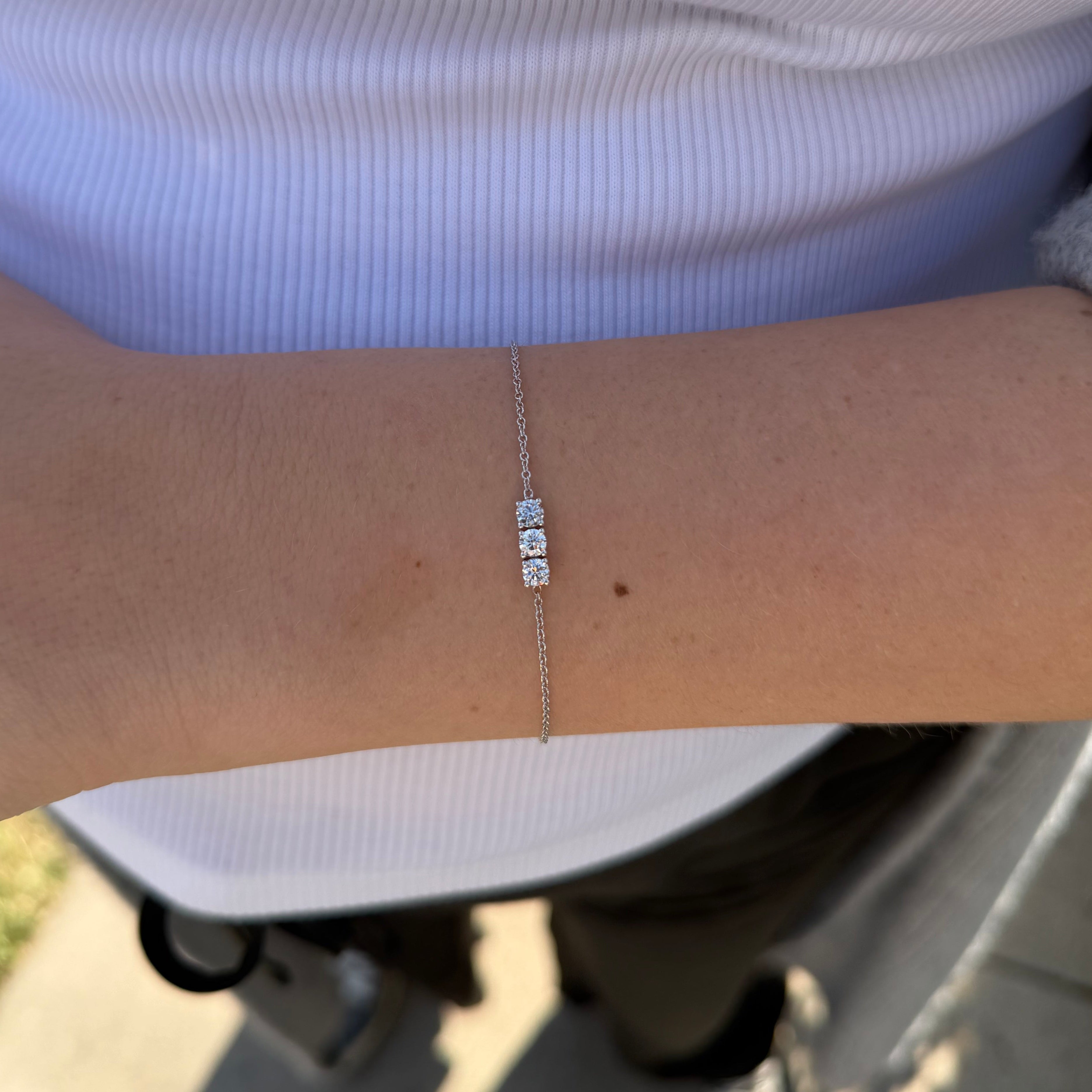 Simple, classic, and meant to be worn daily. This white gold chain bracelet features three lab-grown diamonds for a subtle... Read more