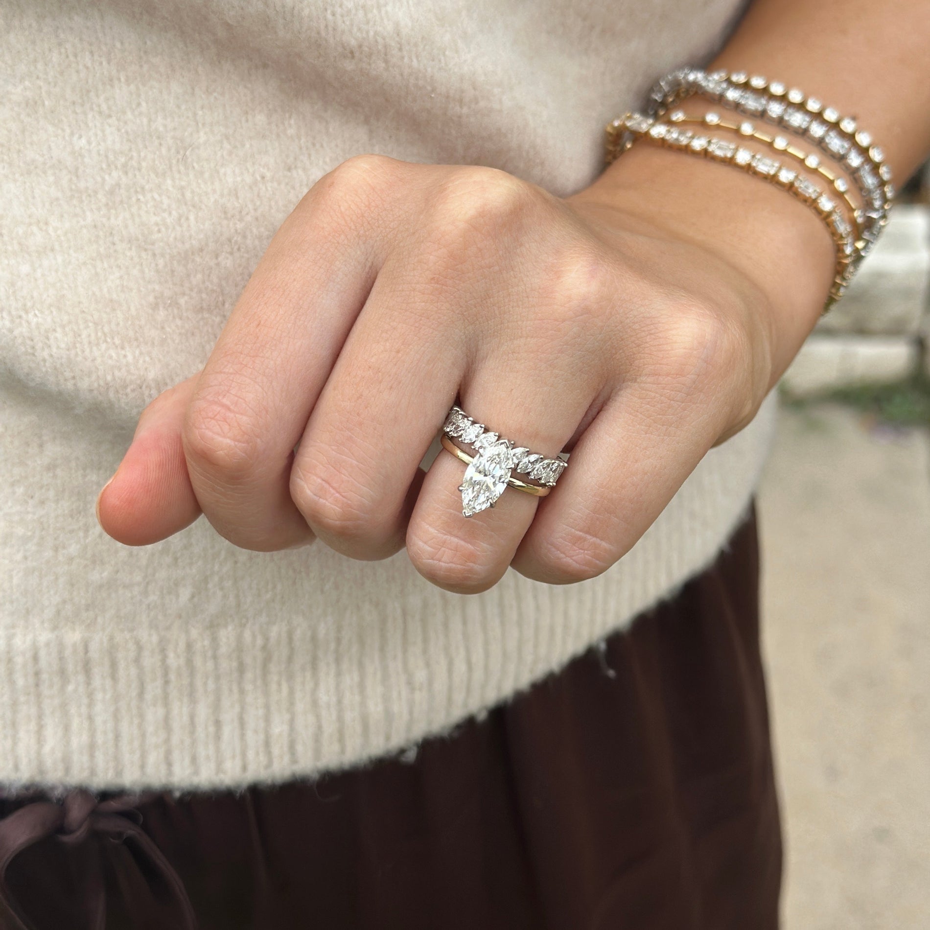 2.37cttw Lab Grown Marquise Diamond Solitaire engagement ring set in 14K white gold prongs on a 14K yellow gold band. Read more