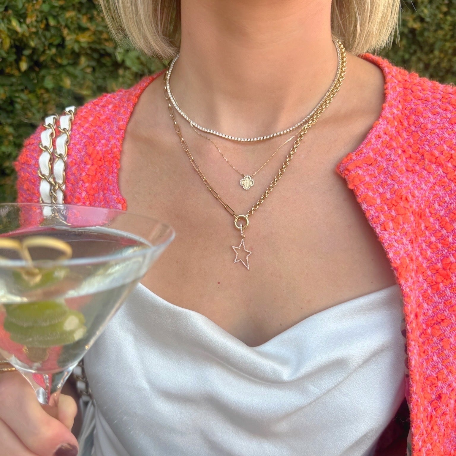 Loving this new way to layer your neck party! Half paper clip half rolo chain with a connecter in the... Read more