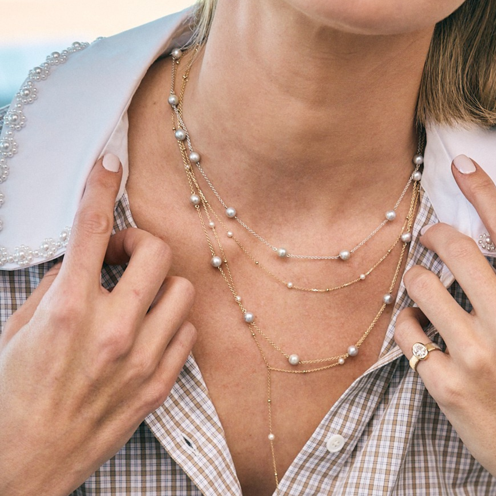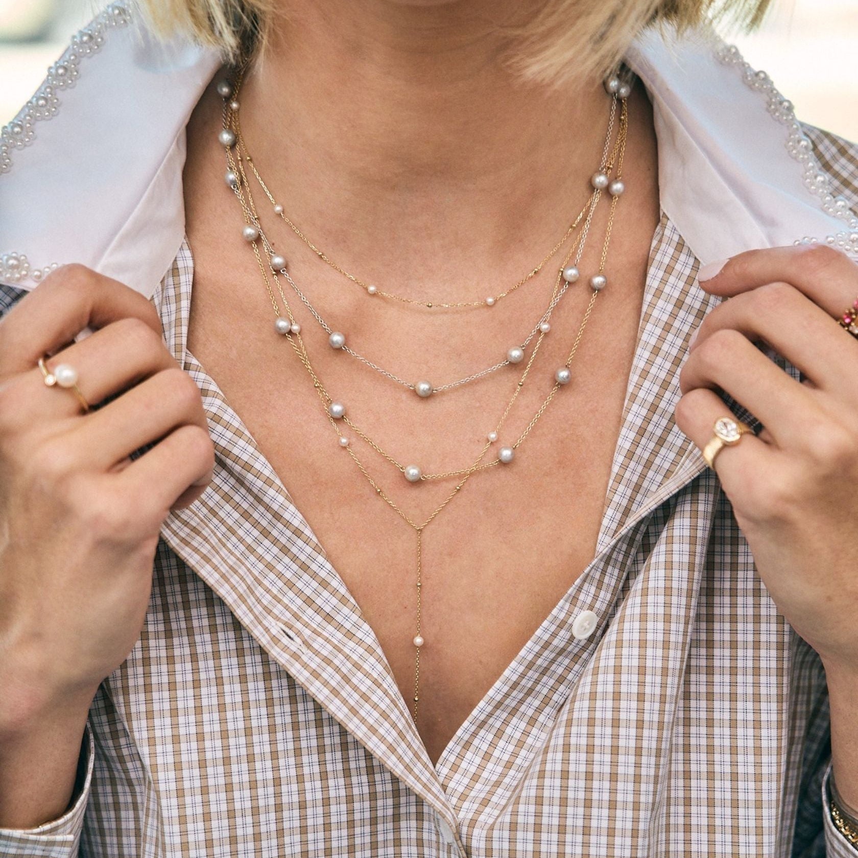 This Pearl and Bead Necklace pairs luminous pearls with delicate beads for a timeless yet modern look. Perfect worn alone... Read more