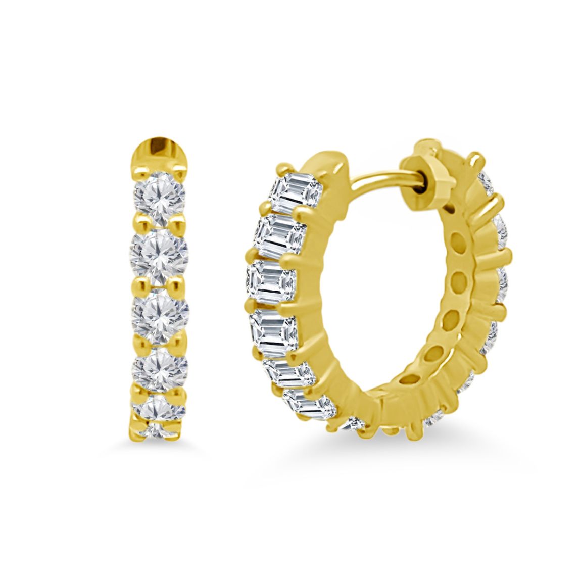 <li>0.42cttw round diamonds and 0.60cttw baguette diamonds set in a 14K gold huggie. </li>