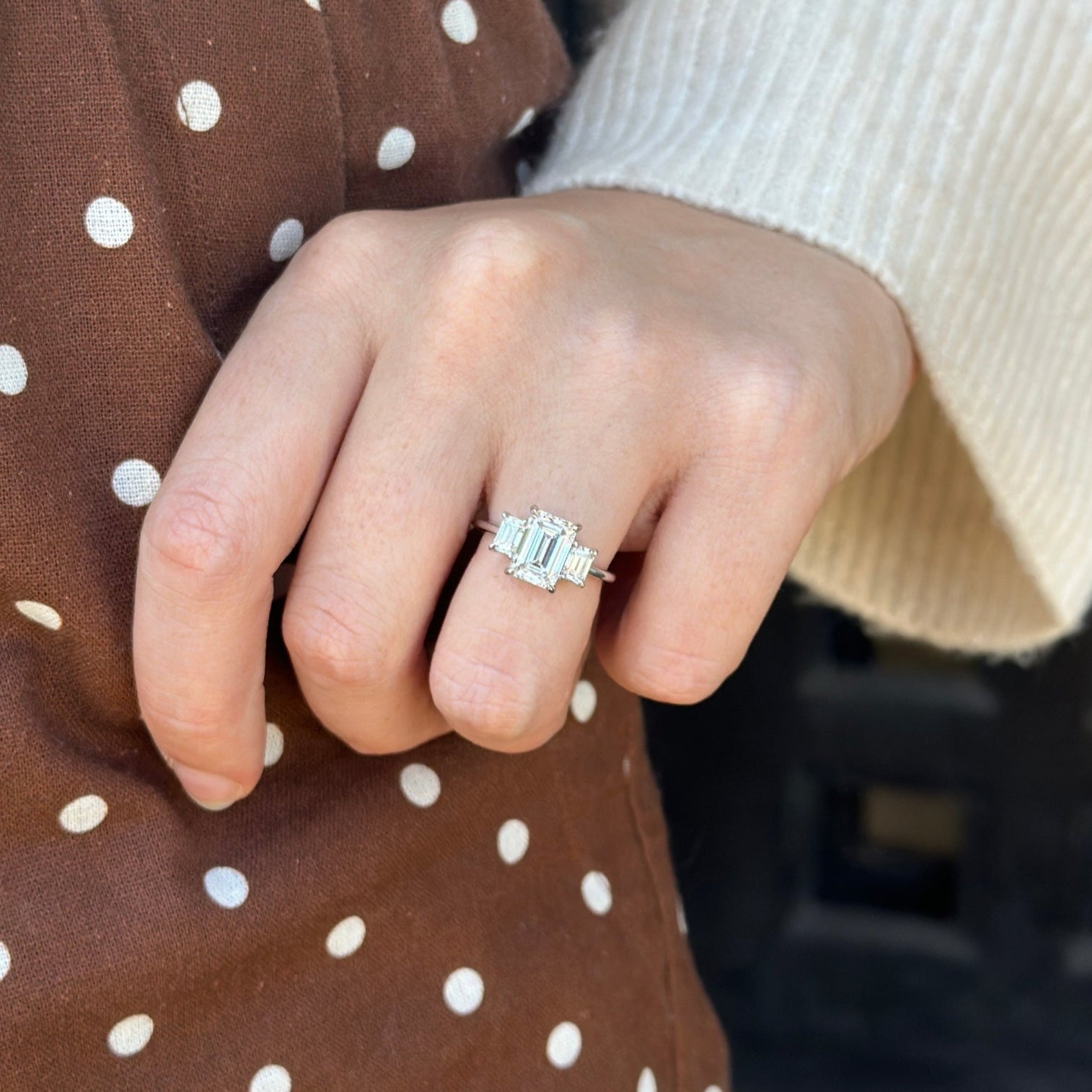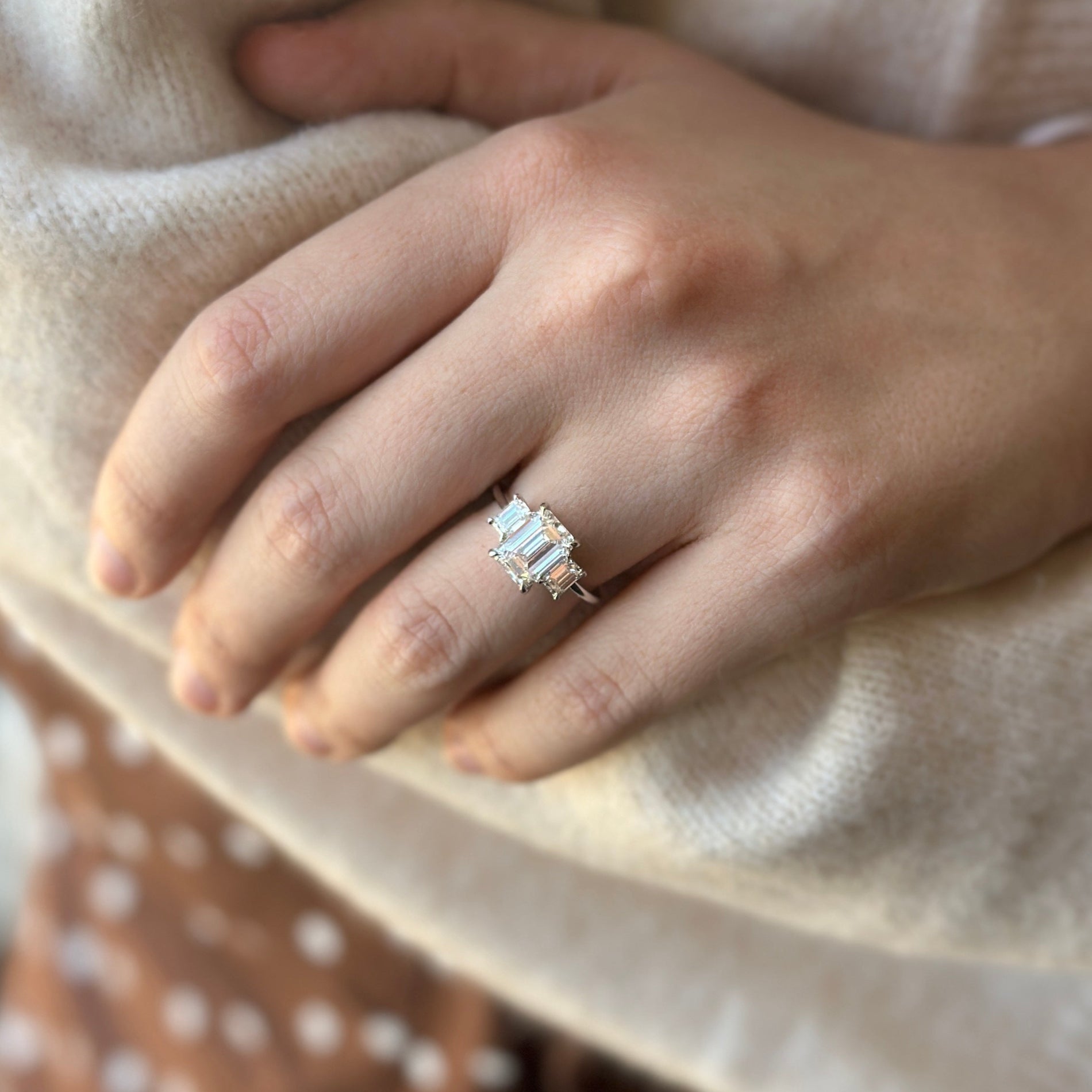 <li>Lady's Triple Emerald Cut Engagement Ring</li>