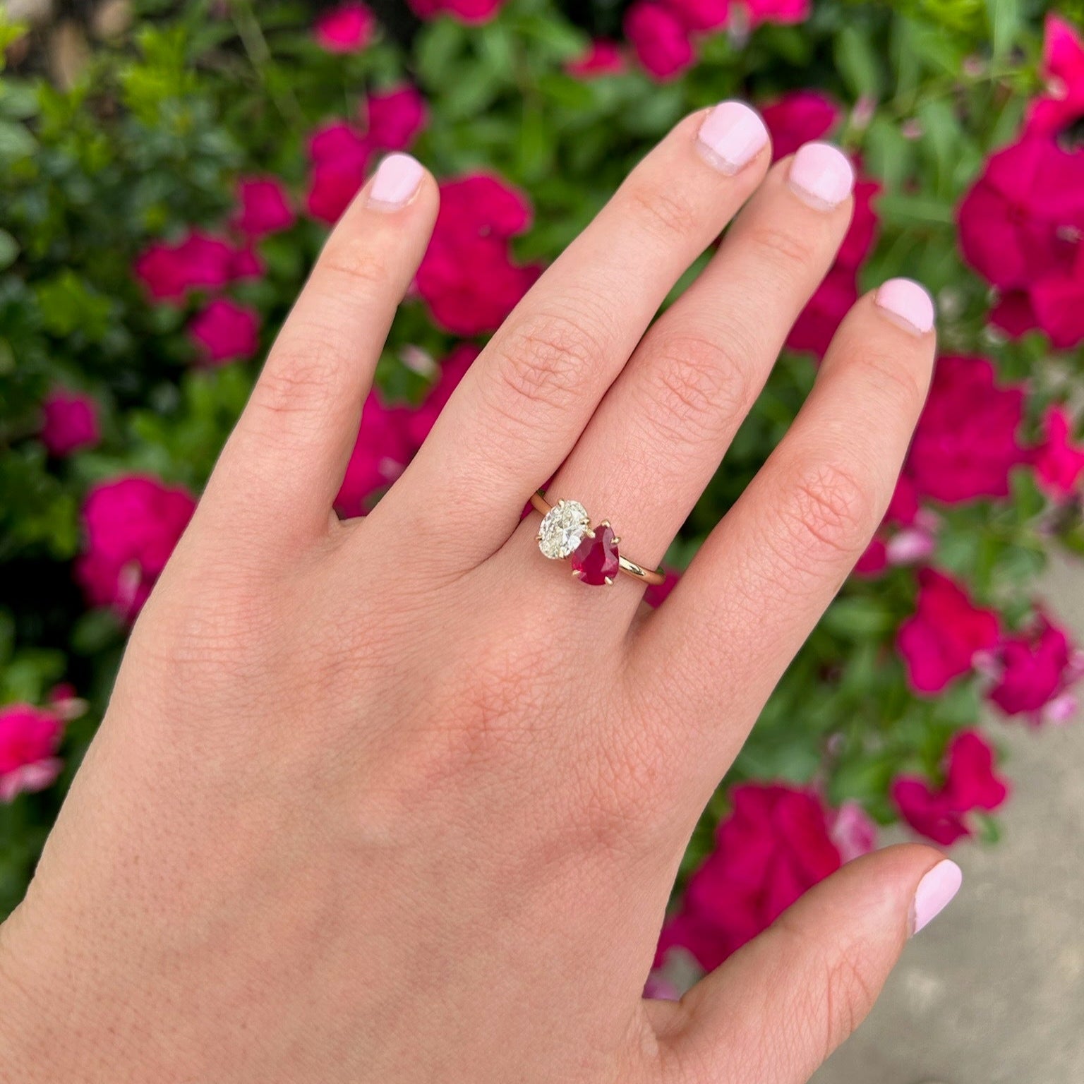 Round and Pear diamond engagement ring set on a dainty thin band. Please inquire for purchase process and timeline. All... Read more